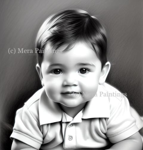 charcoal drawing of a baby boy
