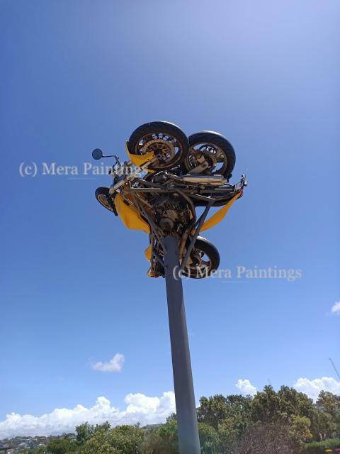 tamarama bondi sculptures by the sea 2022 motor bike sculpture upside down motor bike nature art exhibition stock photo premium stock photoSimilar Photos