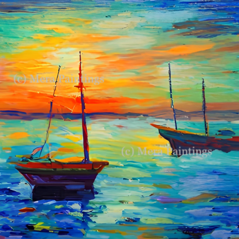 boats and sea at sunset