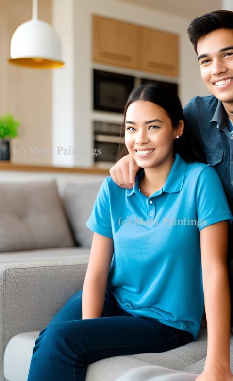 happy couple having great time at home