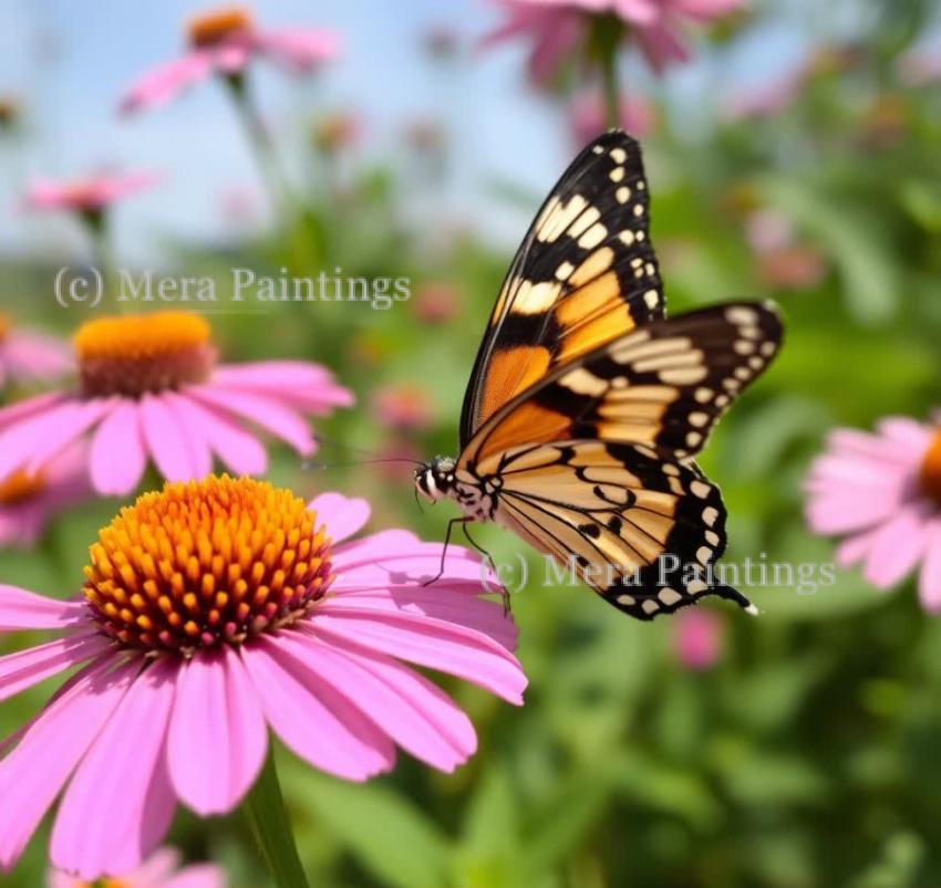 Soft wings gently land, Fragrant petals, sweet perfume, Sips of summer's kiss.
