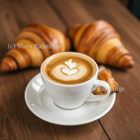 Cup of cappuccino with croissants