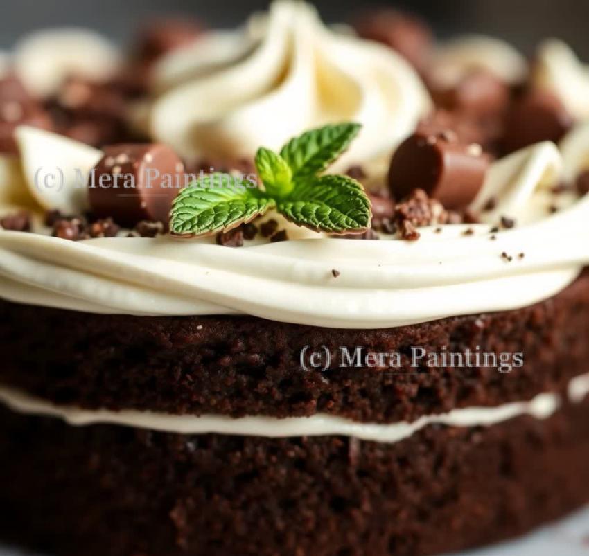 Chocolate cake with mint and chocolate toppings